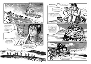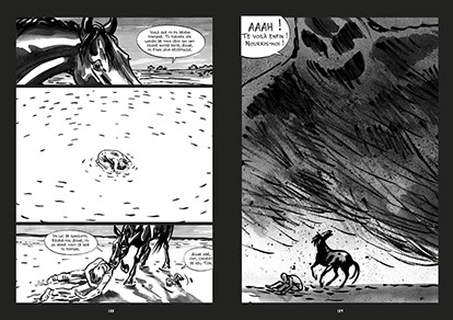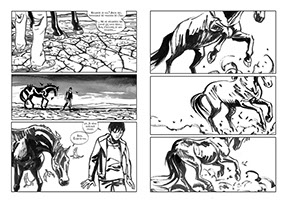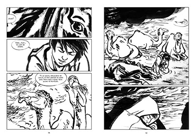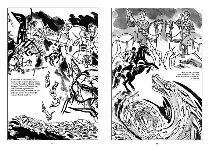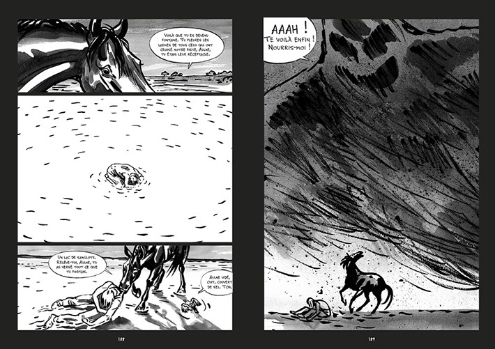 forme d’un cheval noir, Kali, le cheval-caillou, qui l’entraîne dans une chevauchée vers le Sud, sur la piste du désert de Syrie jusqu’au Botswana. Le jeune homme entend les mémoires de la terre et le langage des bêtes. Invisible aux hommes, il traverse des pays meurtris. Il en devient témoin, réceptacle des émotions contenues. Il répond à l’appel impérieux de l’hippotrague, l’antilope d’Afrique, prêt à affronter le mystère de l’ombre.