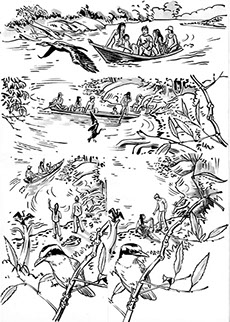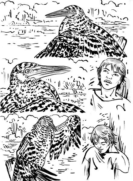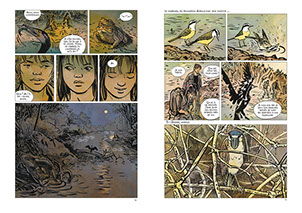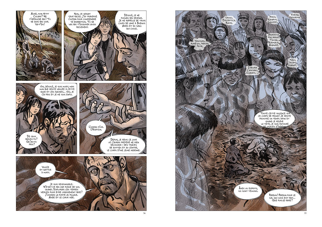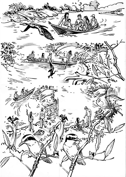Cette aventure initiatique emporte nos deux héros Frêne et Alise dans une marche étrange et folle à travers la forêt amazonienne. Un Indien, Pehuen, les guide dans leur périple, ainsi qu’un cormoran espiègle. Ils devront parvenir à restituer une petite sculpture en or représentant un singulier oiseau, l’Hoatzin, à sa terre d’origine. Leur chemin est semé d’embûches et de péripéties : intempéries, mercenaires sans scrupule, zones dévastées, pollutions, piqure de serpent... Dans leurs tribulations, trouveront-ils l’oiseau tant attendu ? De rebondissement en rebondissement, les compagnons de mésaventure trouveront une issue improbable et inattendue à cette aventure hors norme.